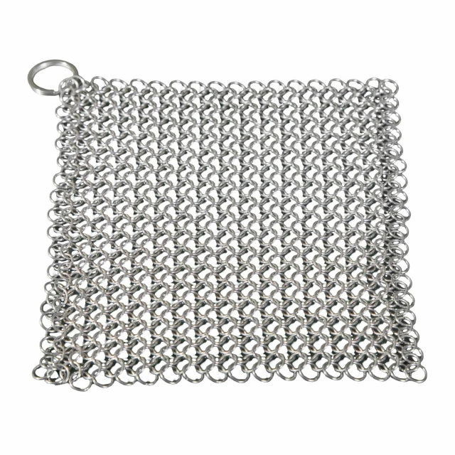Clean cast iron, steel griddles, and other cookware with the chain mail scrubber.