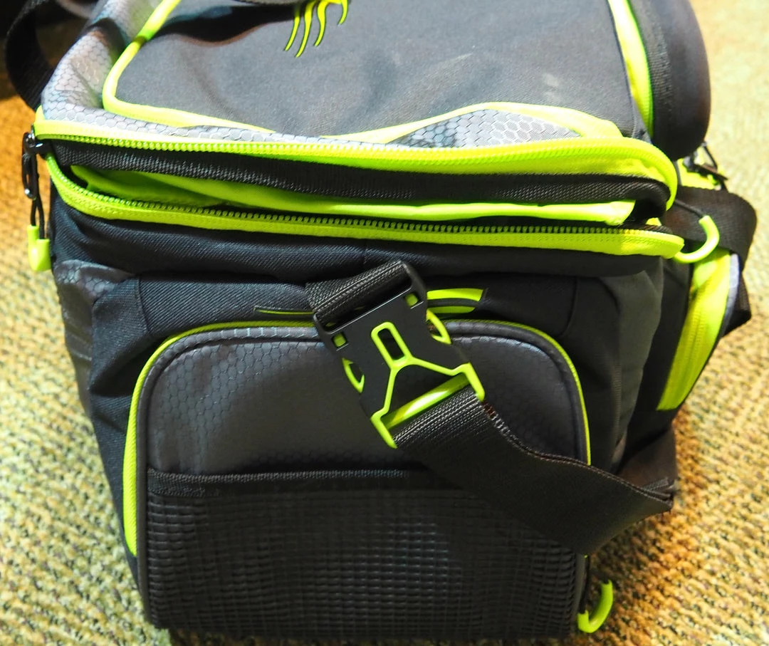 The Lew’s Mach Tackle Bag will fit just about anything but the kitchen sink. Five 3700 style tackle boxes fit in the main zipper compartment, while outside features 4 rubber mesh pouches, a plier holder and a “juice pouch” for dye, sunscreen, or bug spray. A sunglass case is even incorporated into the front side to store and protect sunglasses when not in use. To boot, the side pockets feature a line spooling grommet for on-the-water line changeups. 600 D ripstop panes, EVA wall construction and a rubber coated base mean this pack can hold up to the abuse that occurs when on the water.