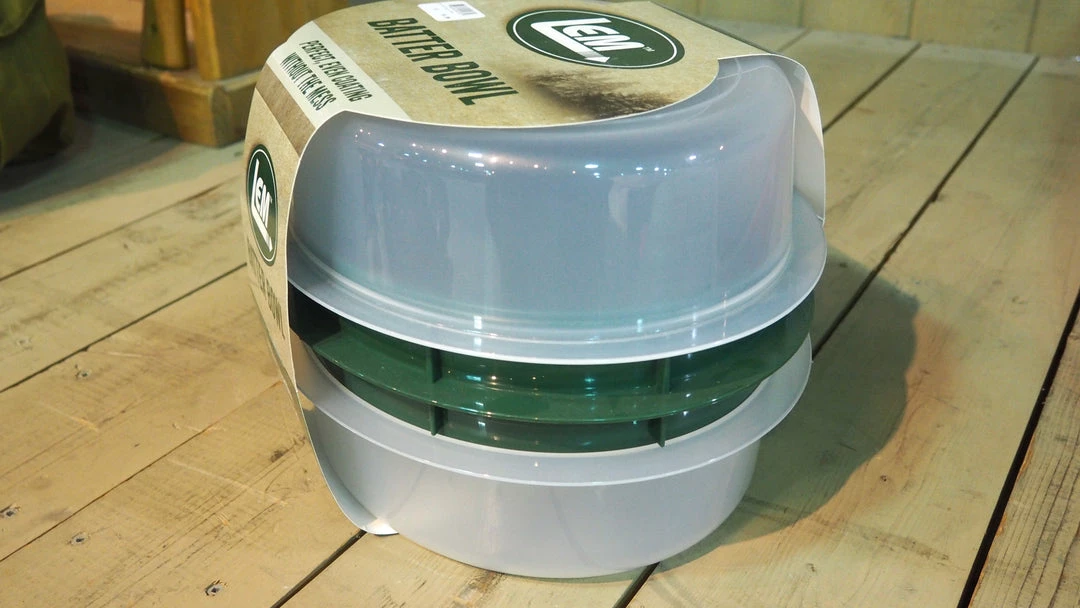 The Lem Batter Bowl provides perfect even coating without the mess! You can quickly and easily batter or bread with no mess and less waste. Simply place batter or breading and food in base. Place sifter on top. Cover with second bowl and shake to coat. Flip! Excess coating will fall away. Fryer ready!