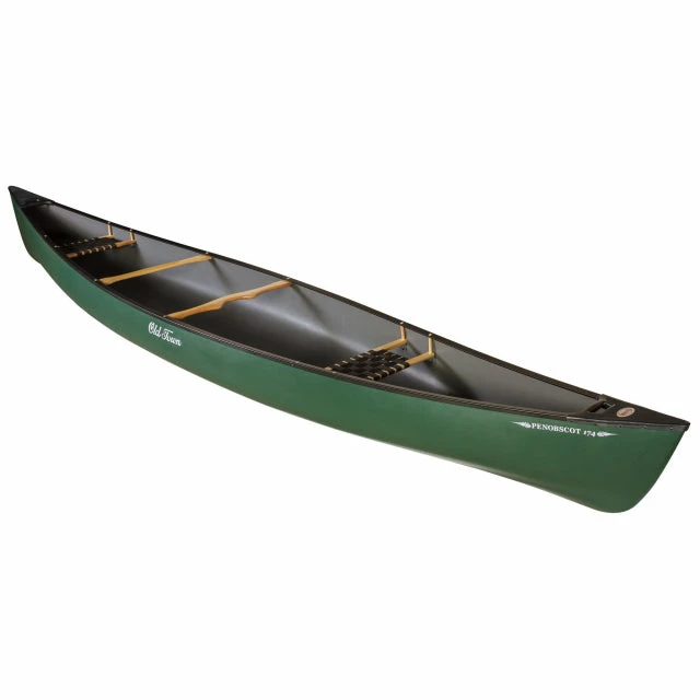 The longest canoe in the popular Penobscot series, the 174 can track and glide through the water with ease. Made from three layer polyethylene, the Penobscot 174 is built to be durable and tough. An aggressive canoe with a hull designed around pushing the limits. Even when loaded down with gear, the Penobscot 174 is an efficient ride when paddling longer distances. Color Green Activity Touring Number of Paddlers 2 Material Three Layer Polyethylene Length 17 ft 3.96 in | 5.3 m Width 36 in | 91.4 cm Width at 4″ Waterline 34 in | 86.4 cm Bow Height 22 in | 55.9 cm Depth 14 in | 35.6 cm Assembled Boat Weight The boats weight including everything Old Town supplies with the boat – Hull, Hardware, Seat, Accessories and Motor/Pedal console (when applicable). 90 lb | 40.824 kg Total Weight Capacity The total weight a boat can support on the water including everything the Assembled Boat, People, Gear, Dog, Motor/Pedal Console (when applicable) and 75 lb. Lead-acid Battery (when required). 1500 lb | 680.4 kg Usable Weight Capacity The weight that is left for People, Gear, and Dog after accounting for the weight of the Assembled Boat and 75 lb. Lead-acid Battery (when required). 1410 lb | 639.58 kg Bottom Shape Shallow Arch Sides Straight Rocker Minimum Seat Type Nylon Web