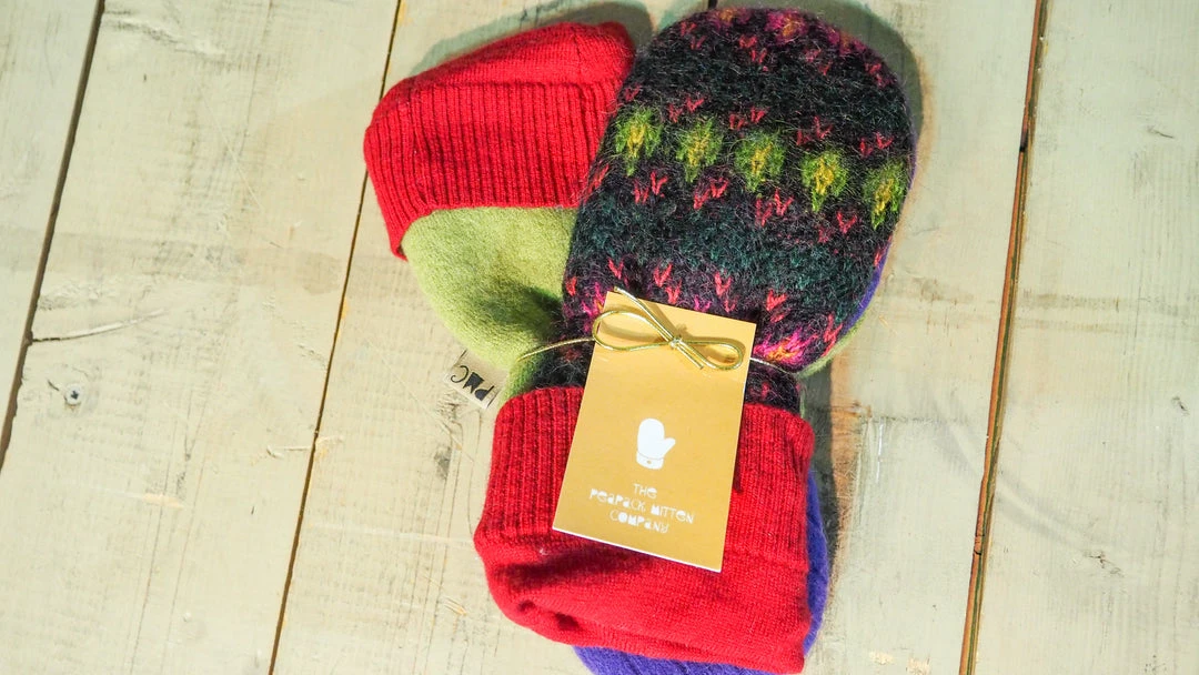 Mittens… Made in the Mitten State! Made in Michigan with superior workmanship, The Peapack Mitten Company is bringing 100% wool sweaters back to life! We put the “fun” in “functionality” with artful one-of-a-kind designs that offer you warmth and comfort during the coldest of winter days. All of our mittens are lined in high-grade polarfleece and are machine washable. One size fits all! Let our unique designs keep you warm while making a fashion statement.ย
