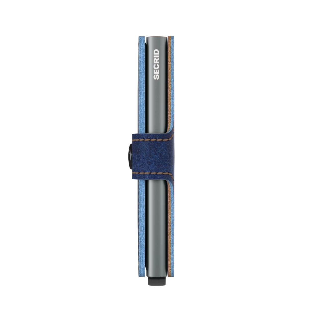 Our most iconic wallet and the perfect all-rounder. The Miniwallet is compact in size and surprisingly large in storage capacity. With a wide variety of styles and colours, it fits every pocket. The patented mechanism allows you to slide out your cards with one simple motion, ready for immediate use. The aluminium protects from bending, breaking and unwanted wireless communication. Miniwallet Indigo 5-Titanium is inspired by the unique colouring of denim. The soft leather is dipped repeatedly to a perfect shade of multitoned denim blue.