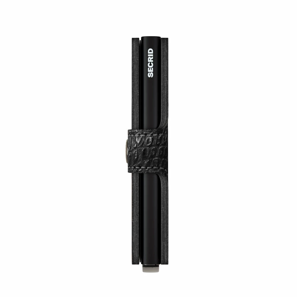 Our most iconic wallet and the perfect all-rounder. The Miniwallet is compact in size and surprisingly large in storage capacity. With a wide variety of styles and colours, it fits every pocket. The patented mechanism allows you to slide out your cards with one simple motion, ready for immediate use. The aluminium protects from bending, breaking and unwanted wireless communication. Miniwallet Nile Black is high-quality croc, made from cowhide. The embossing has a deep rich multitoned colour which is achieved with a special tamponato technique and hand finished with a high gloss.