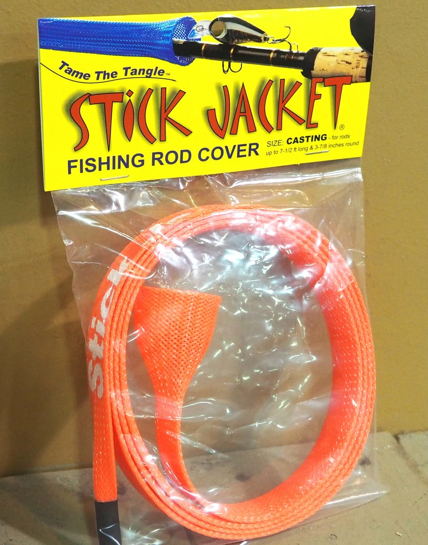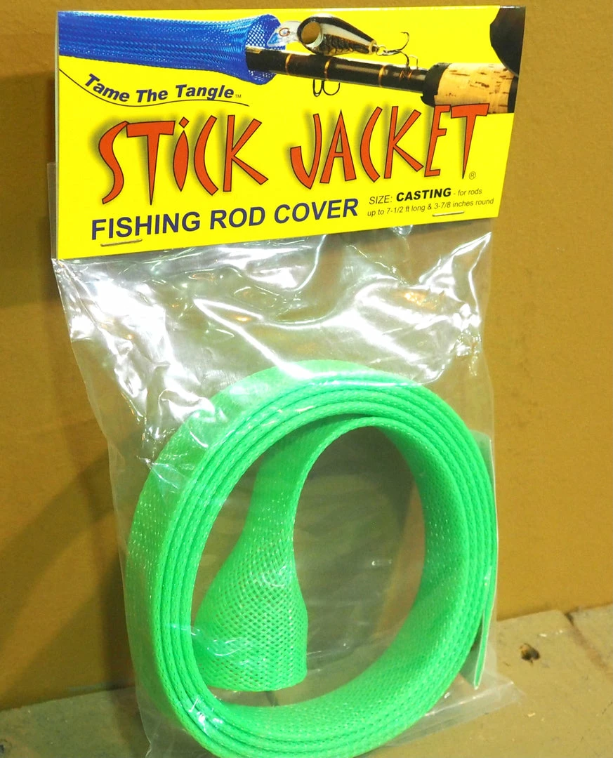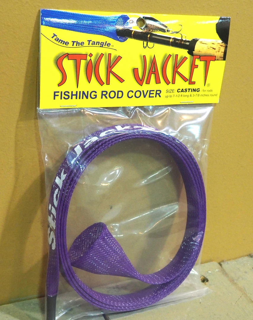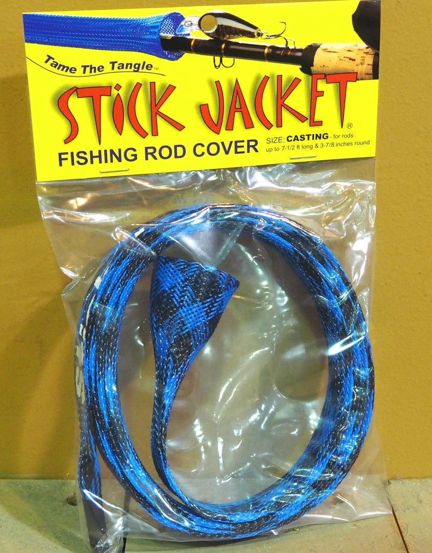 Stick Jacket fishing rod covers are made of a tough polyethylene fiber, are virtually impervious to salt and will not mold or mildew. The unique braided material behaves much like a toy “Chinese finger trap” gripping your fishing pole for snug protection against unwanted damage to line guides and rod tips. Stick Jackets expand to fit over large line guides and rollers. Try them in your boat, rod locker, storage tubes, back of your truck, or walking down to the lake.