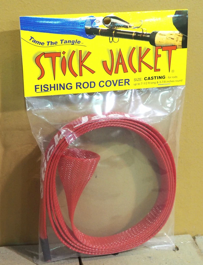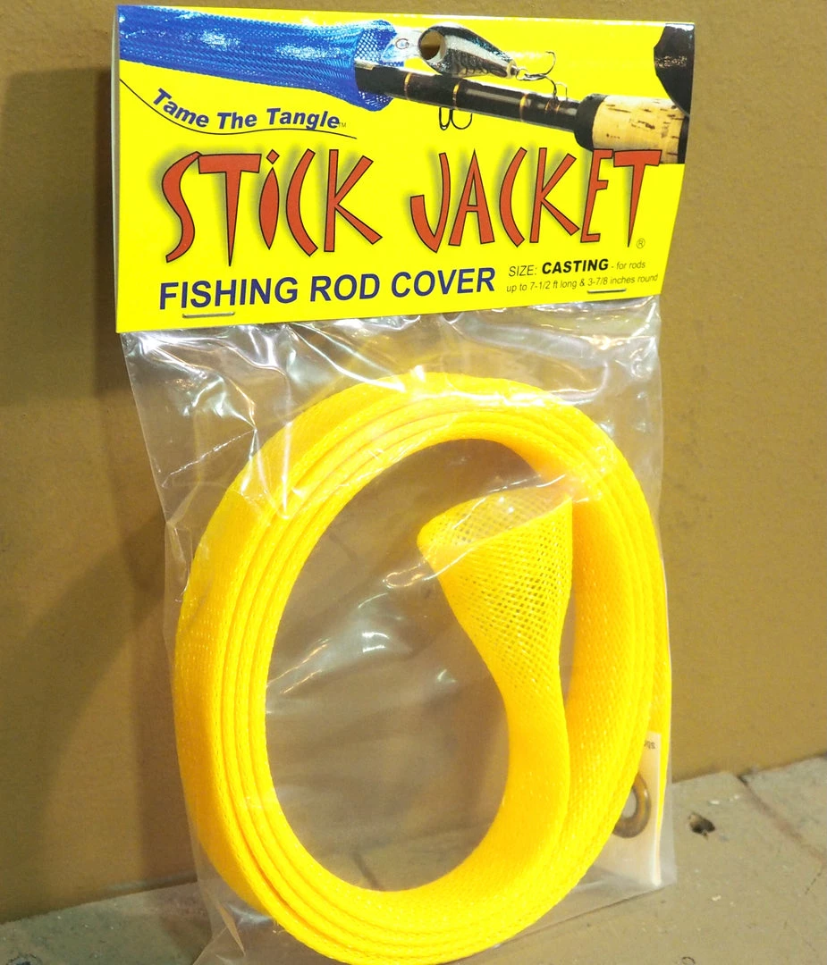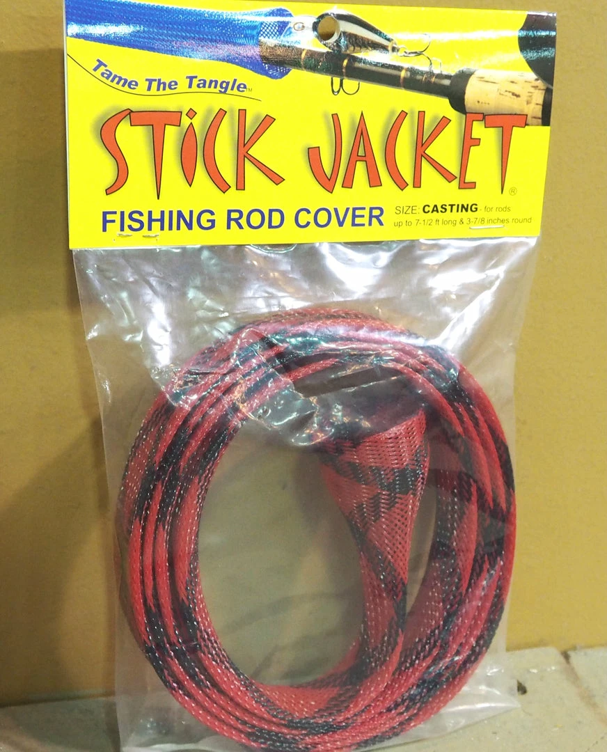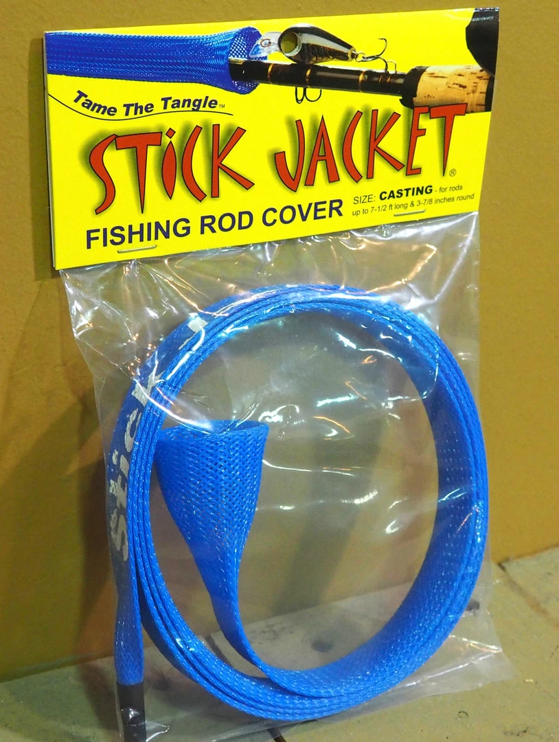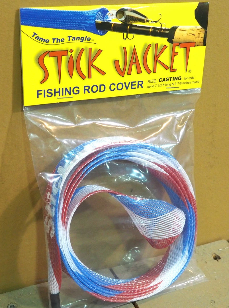 Stick Jacket fishing rod covers are made of a tough polyethylene fiber, are virtually impervious to salt and will not mold or mildew. The unique braided material behaves much like a toy “Chinese finger trap” gripping your fishing pole for snug protection against unwanted damage to line guides and rod tips. Stick Jackets expand to fit over large line guides and rollers. Try them in your boat, rod locker, storage tubes, back of your truck, or walking down to the lake.