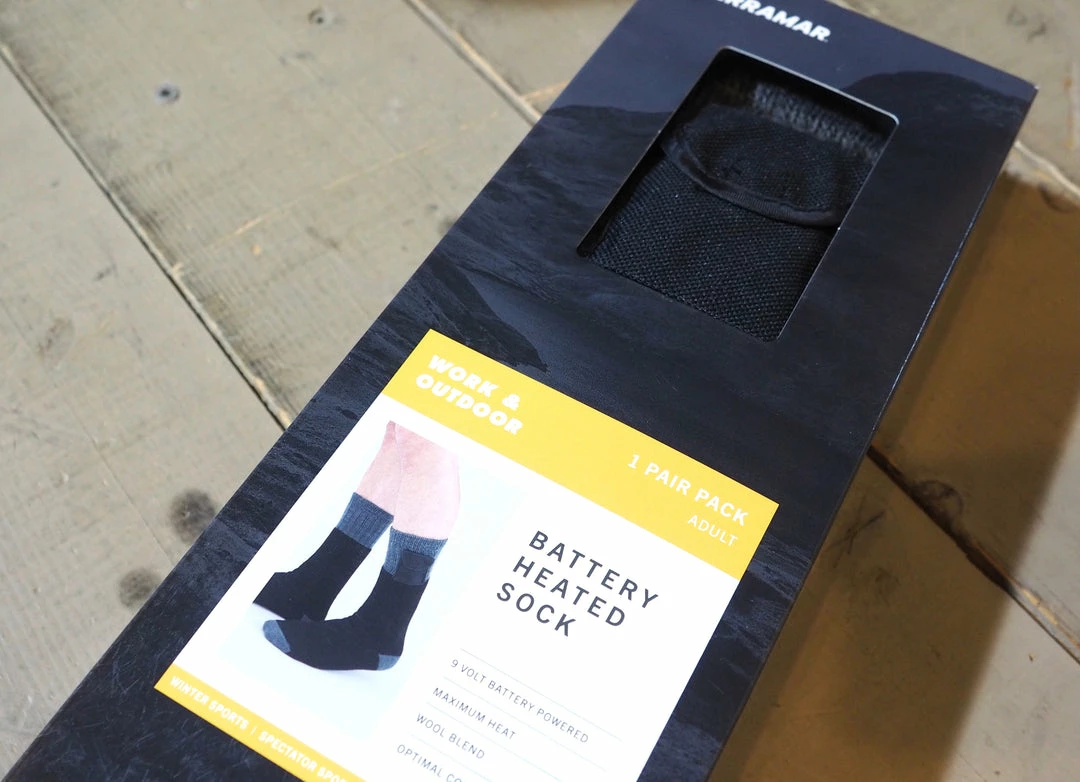 Keep your feet warm and comfortable all day long with these battery socks. Constructed with a blend of wool yarns, these ultimate foot warmers are perfect for both indoors and outdoors. Featuring reinforced toes and heels for all day protection against chafing. 9v-cell batteries are comfortably carried in a snap-close pouch.