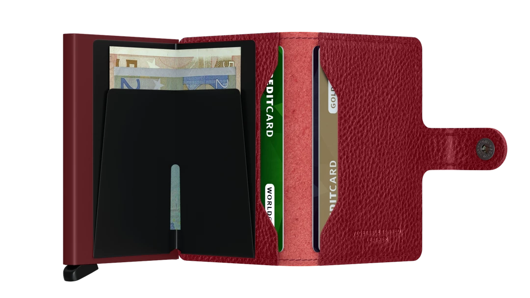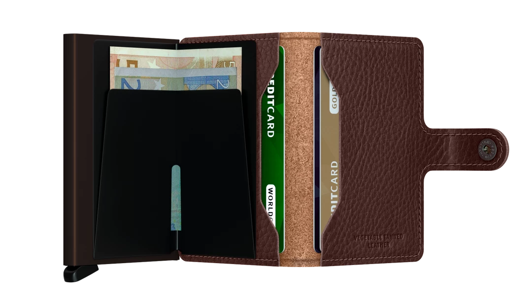 Our most iconic wallet and the perfect all-rounder. The Miniwallet is compact in size and surprisingly large in storage capacity. With a wide variety of styles and colours, it fits every pocket. The patented mechanism allows you to slide out your cards with one simple motion, ready for immediate use. The aluminium protects from bending, breaking and unwanted wireless communication. Using only natural materials, an Italian family tannery employs the traditional process of vegetable tanning to make this distinctive leather age beautifully.
